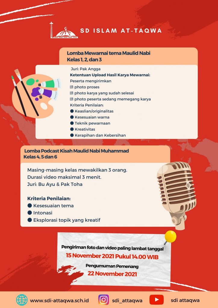 Lomba Hari Pahlawan, Bulan Bahasa dan Maulid Nabi Tahun 2021 Upload Karyamu melalui Website https://linktr.ee/sdiattaqwa