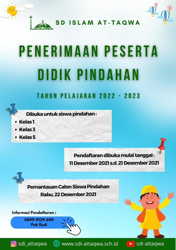 Penerimaan Peserta Didik Pindahan SDS Islam At Taqwa Tahun Pelajaran 2022-2023