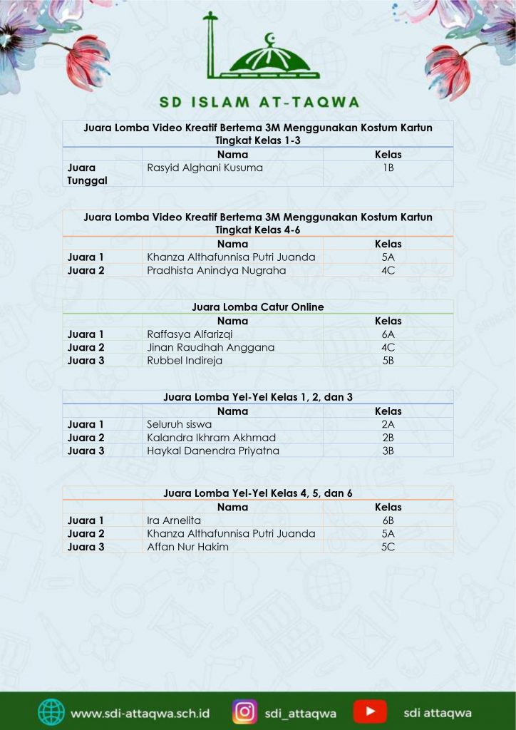 Pengumuman Pemenang Lomba Classmeeting 14-16 Desember 2021