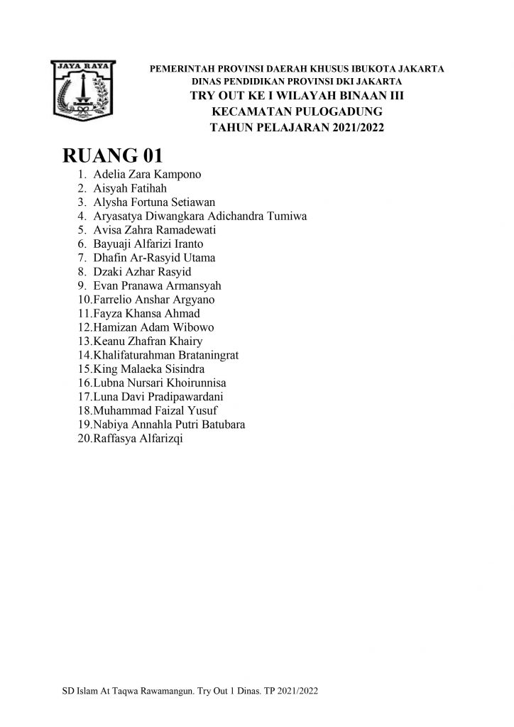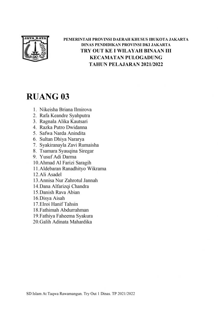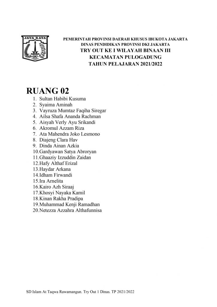 Try Out Pertama Ujian Sekolah (US) Wilayah Binaan III Kecamatan Pulogadung Dinas Pendidikan DKI Jakarta Tahun Pelajaran 2021/2022