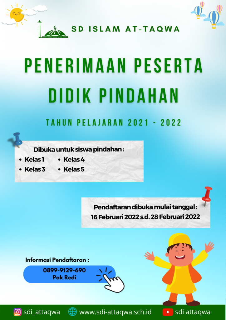 Penerimaan Peserta Didik Pindahan SD Islam At Taqwa Tahun Pelajaran 2021-2022