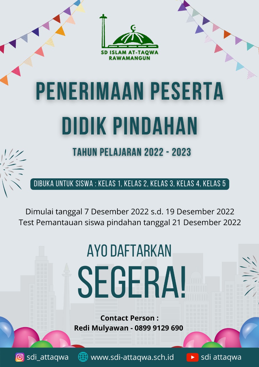 Penerimaan Peserta Didik Pindahan SD Islam At-Taqwa Tahun Ajaran 2022-2023 SUDAH DI BUKA