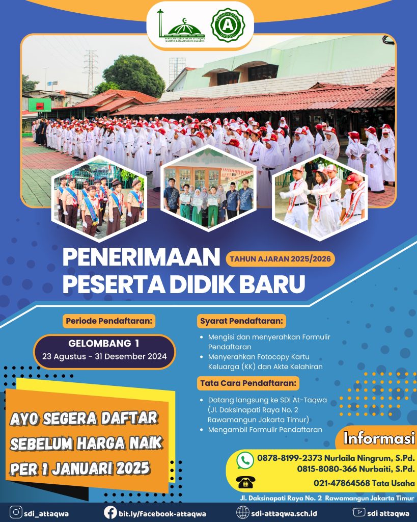 PENERIMAAN PESERTA DIDIK BARU TAHUN AJARAN 2025-2026 SDS ISLAM AT-TAQWA RAWAMANGUN