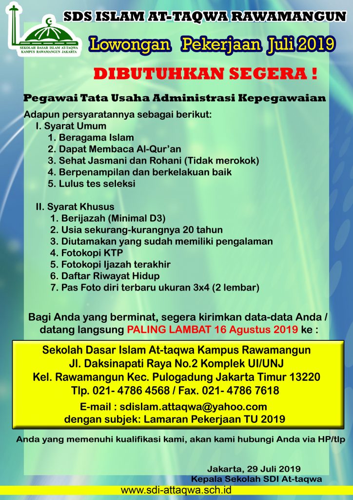 Informasi Masuk Kembali Kegiatan Belajar Mengajar SD Islam At-Taqwa Rawamangun Tahun Ajaran 2025/2026